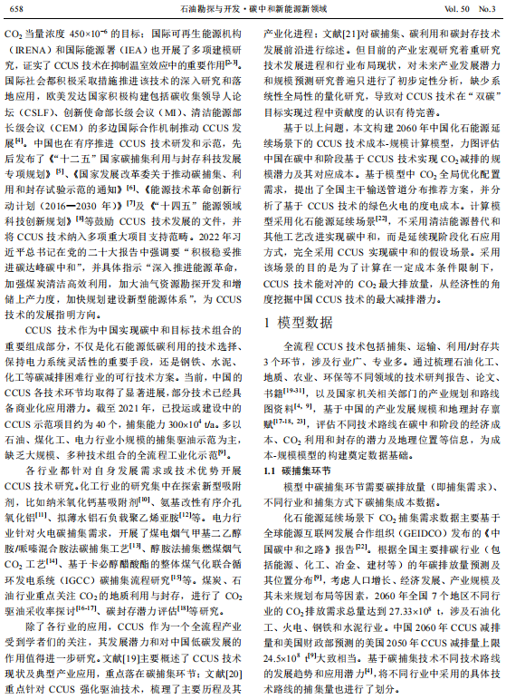 中国二氧化碳捕集利用和封存技术经济性与规模预测