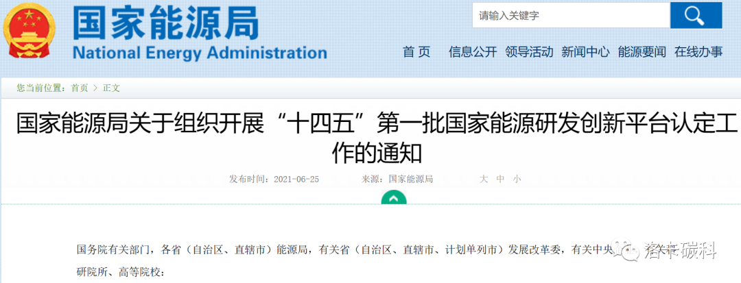 19《关于组织开展“十四五”第一批国家能源研发创新平台认定工作的通知》2021年6月25日